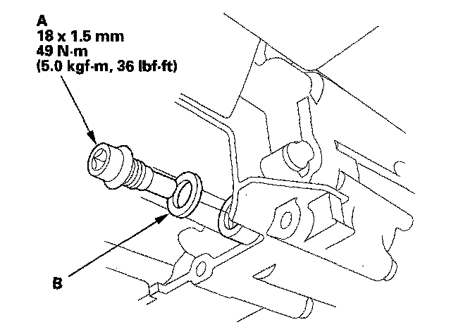15. Remove the shift solenoid harness connector (A), and replace it. Install a new O-ring (B) on the shift solenoid harness connector, and install the connector in the transmission housing, then go to step 21.
