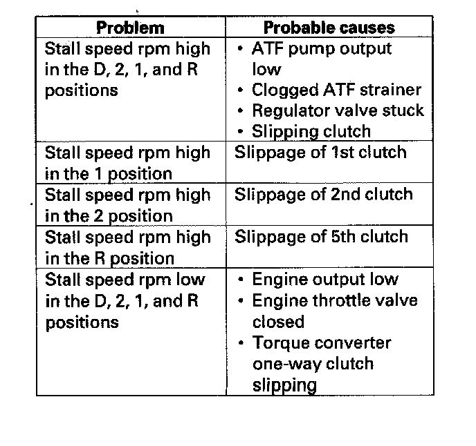 Stall Speed Test1. Make sure the transmission fluid is filled to the proper level.