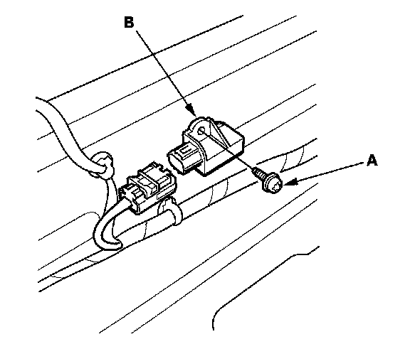 5. Using a TORX T30 bit, remove the TORX bolt (A), then remove the rear safing sensor (B).