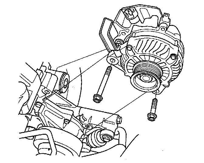 5. Remove the harness connector (C) and harness clamps (D) from the alternator.