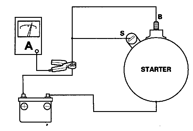 6. If the electric current meets the specification when the battery voltage is at 11.5 V, the starter is working properly.