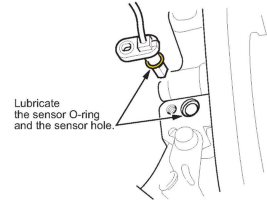 6. Lubricate the ABS wheel speed sensor 0-ring and the sensor hole in the knuckle with multi-purpose grease.