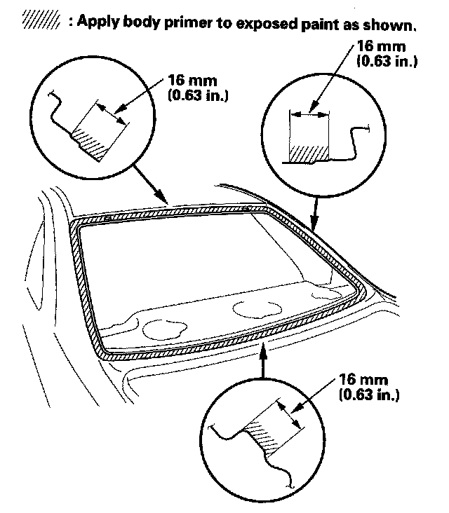 - Do not apply body primer to the rear window, and do not get body and glass primer sponges mixed up.