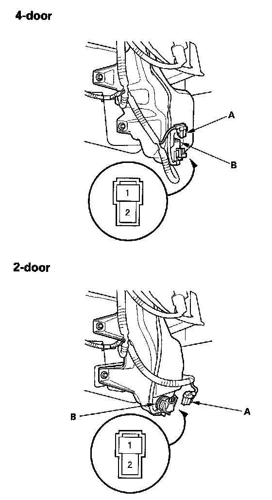 2. Disconnect the 2P connector (A) from the washer motor (B).