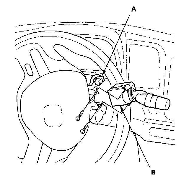 3. Disconnect the dashboard wire harness 8P connector (A) from the wiper/washer switch (B).