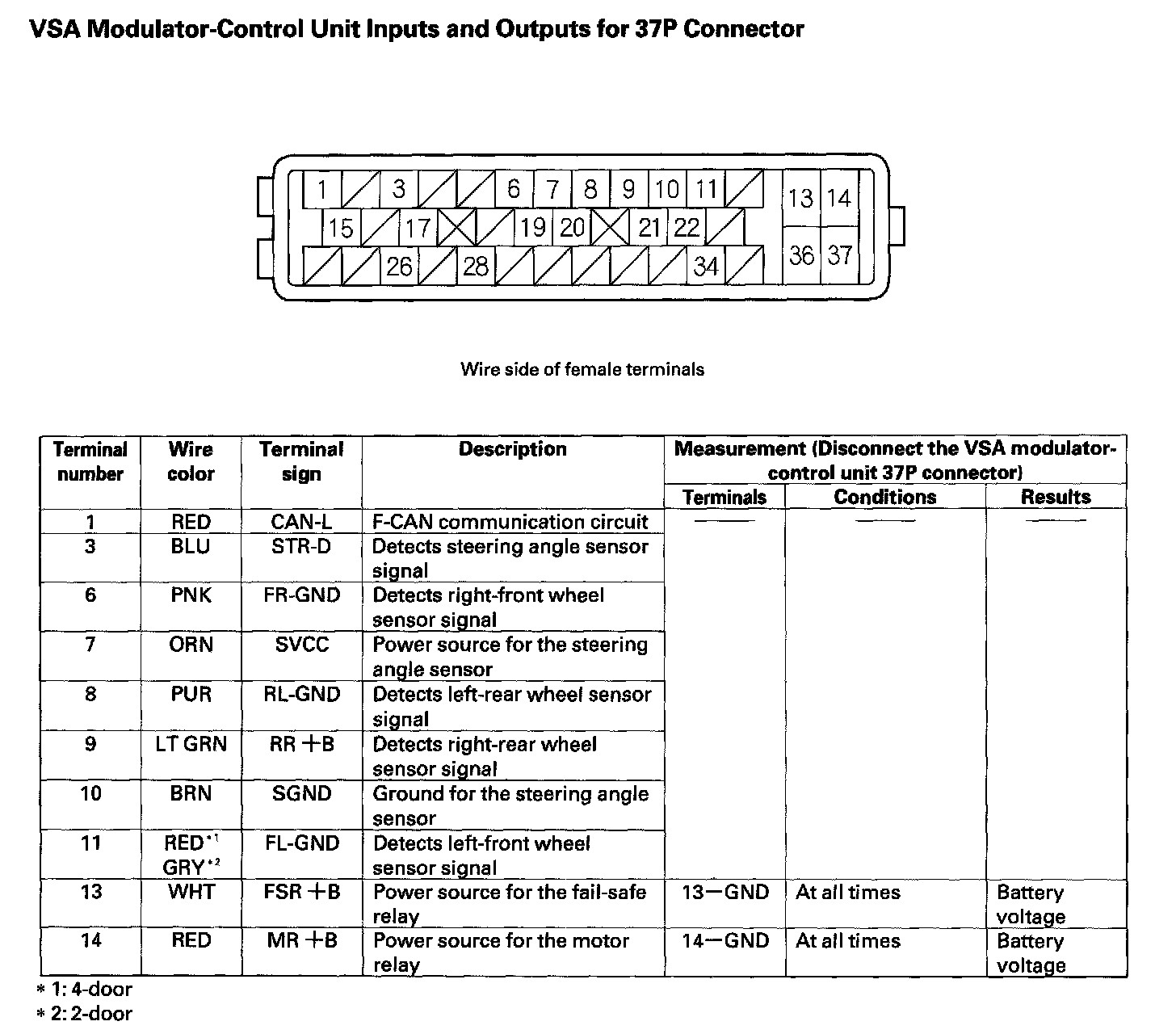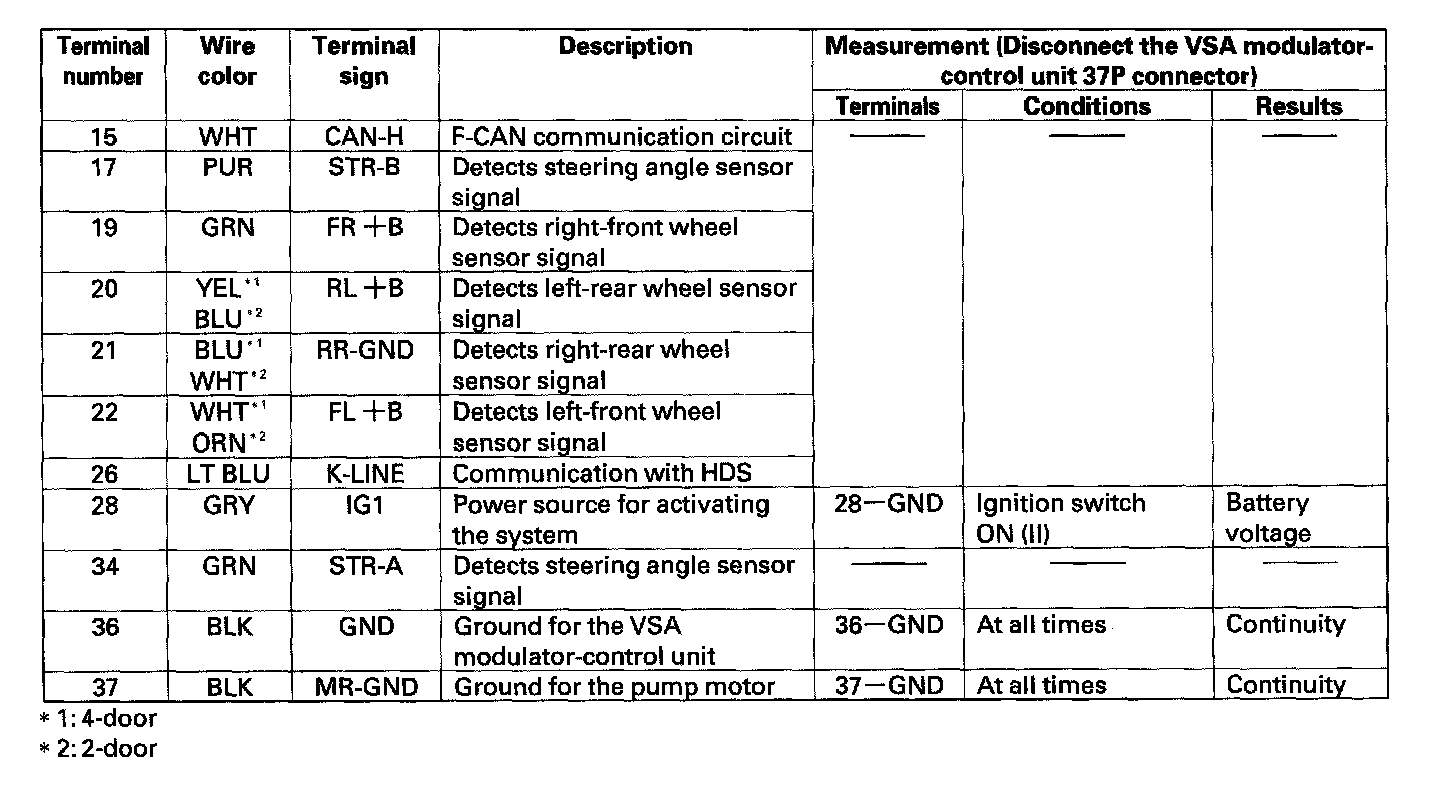 Control Module Pinout Values, VSA