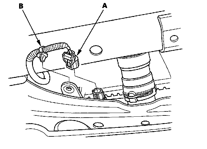 10. Disconnect the engine coolant temperature (ECT) sensor 2 connector (A), and remove the harness clamp (B).