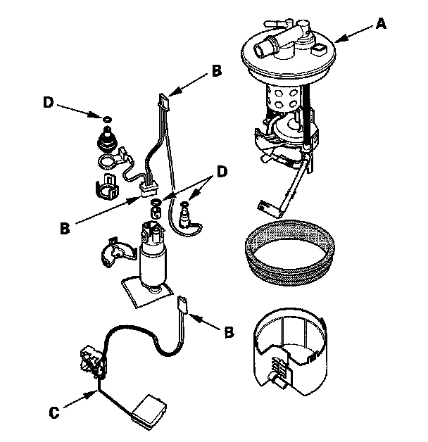 - When installing the fuel gauge sending unit (C), make sure the connection is secure and the connector is firmly locked into place. Be careful not to bend or twist it excessively.