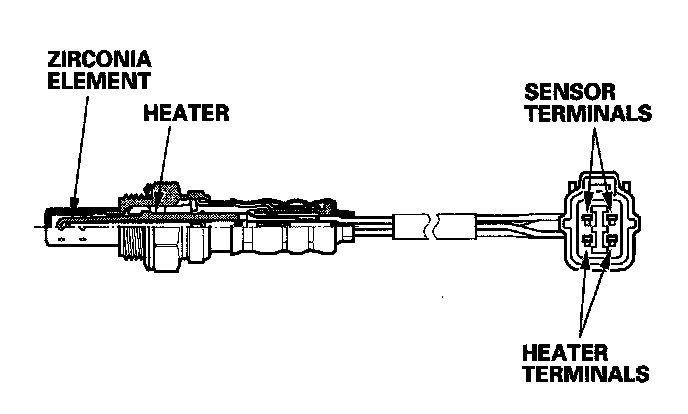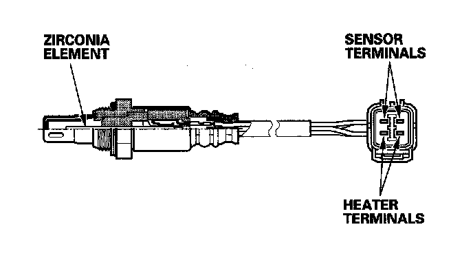 The secondary HO2S detects the oxygen content in the exhaust gas downstream of the three way catalytic converter (TWC), and sends signals to the ECM which varies the duration of fuel injection accordingly. To stabilize its output, the sensor has an internal heater. The ECM compares the HO2S output with the A/F sensor output to determine catalyst efficiency. The secondary HO2S is located on the TWC.