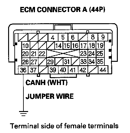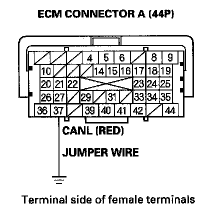 17. Remove the jumper wire from ECM connector A (44P).