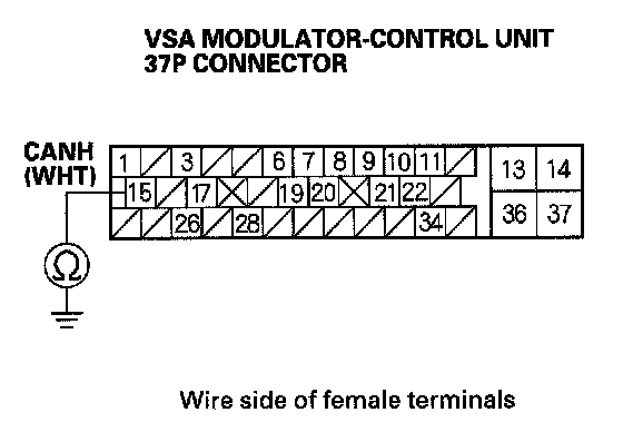 21. Check for continuity between VSA modulator-control unit 37P connector terminal No.1 and body ground.