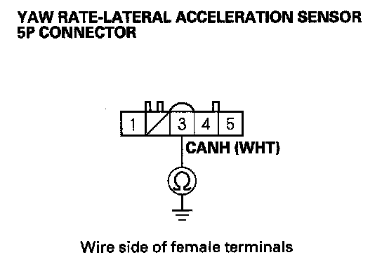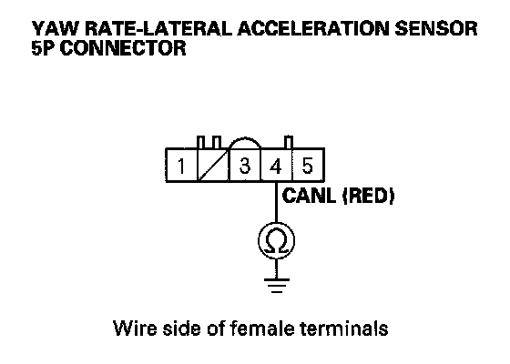 14. Check for continuity between yaw rate-lateral acceleration sensor 5P connector terminal No.3 and body ground.