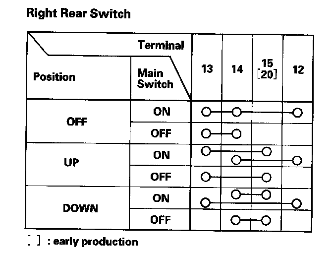 3. Check for continuity between the terminals in each switch position according to the tables.