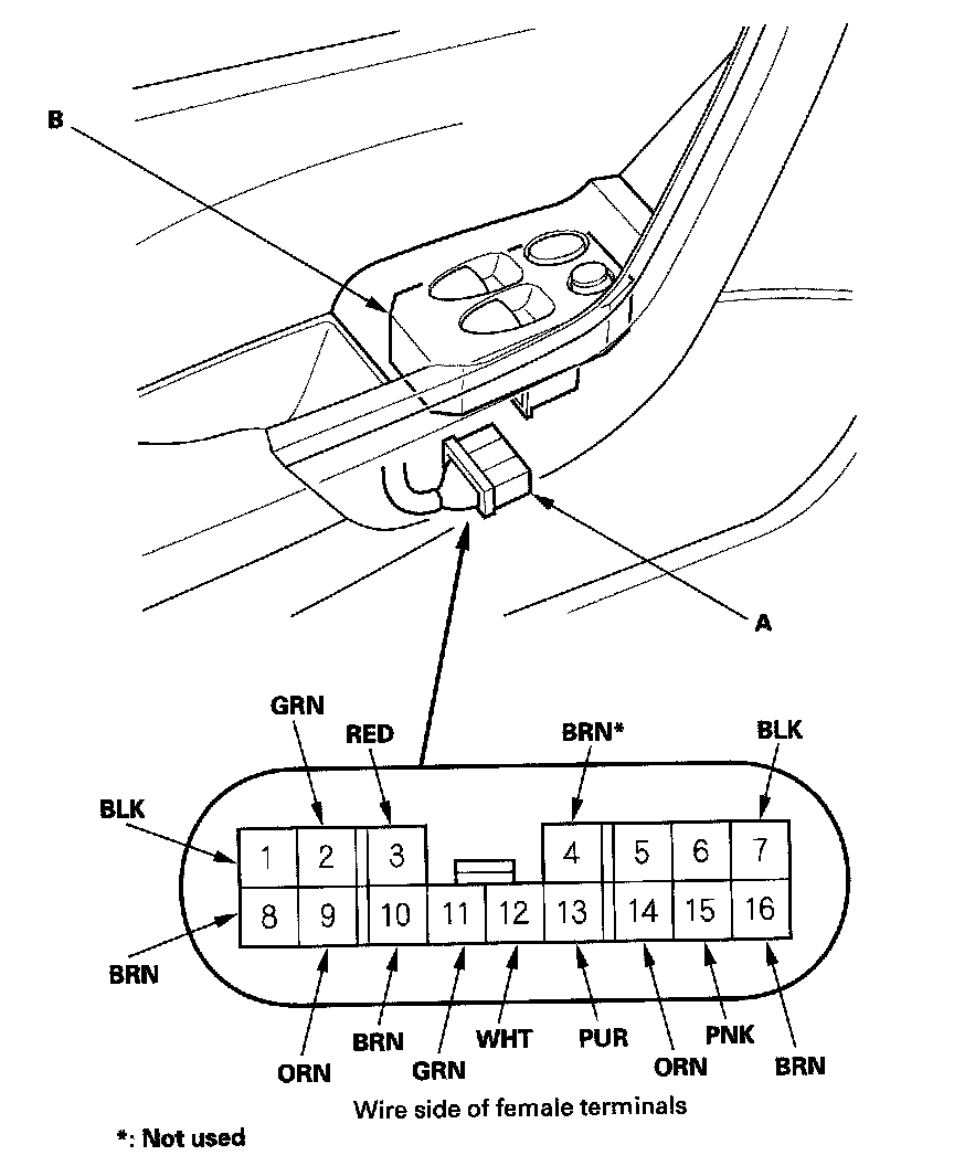2. Disconnect the 16P connector (A) from the master switch (B).