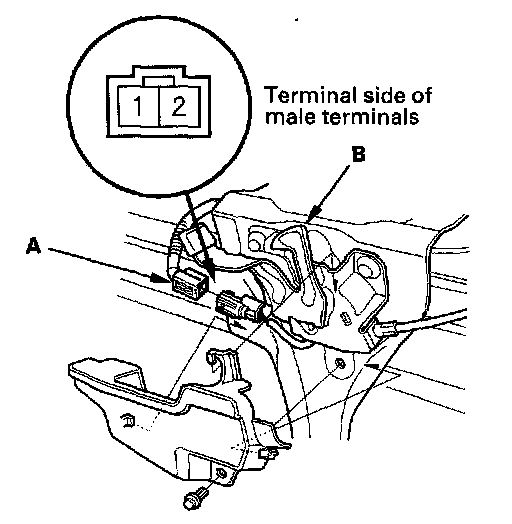2. Disconnect the 2P connector (A) from the hood switch (B)