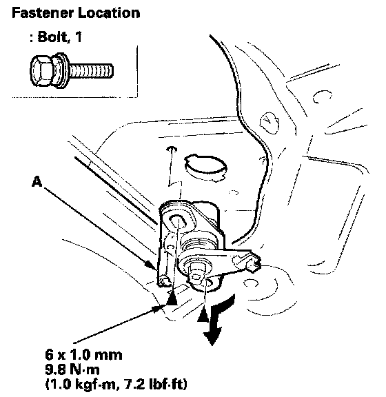 3. Remove the bolt securing the lock cylinder (A), then remove the lock cylinder by turning it.