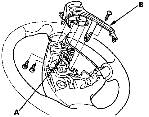 2. Remove the three screws, then disconnect the connector (A), and remove the cruise control combination switch (B).