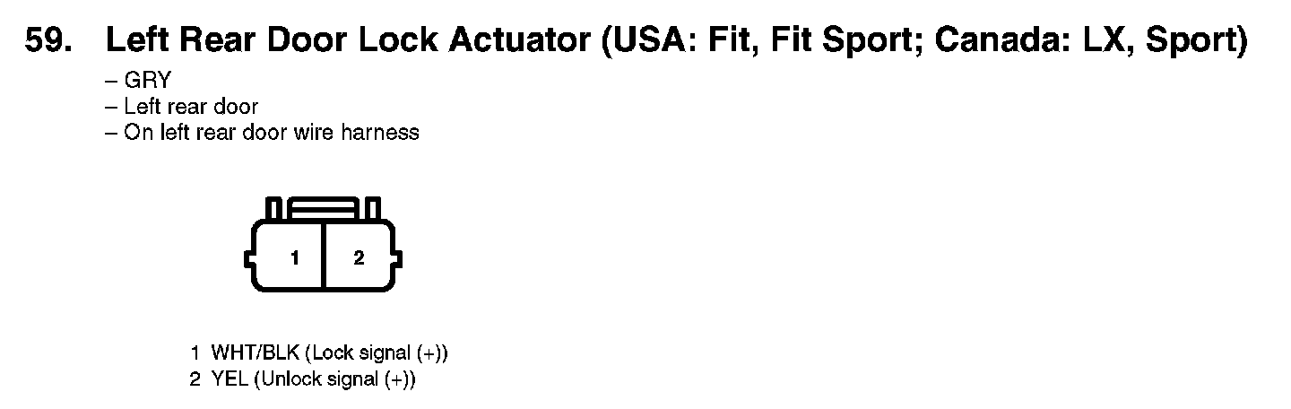 59. Left Rear Door Lock Actuator (USA: Fit, Fit Sport; Canada: LX, Sport):