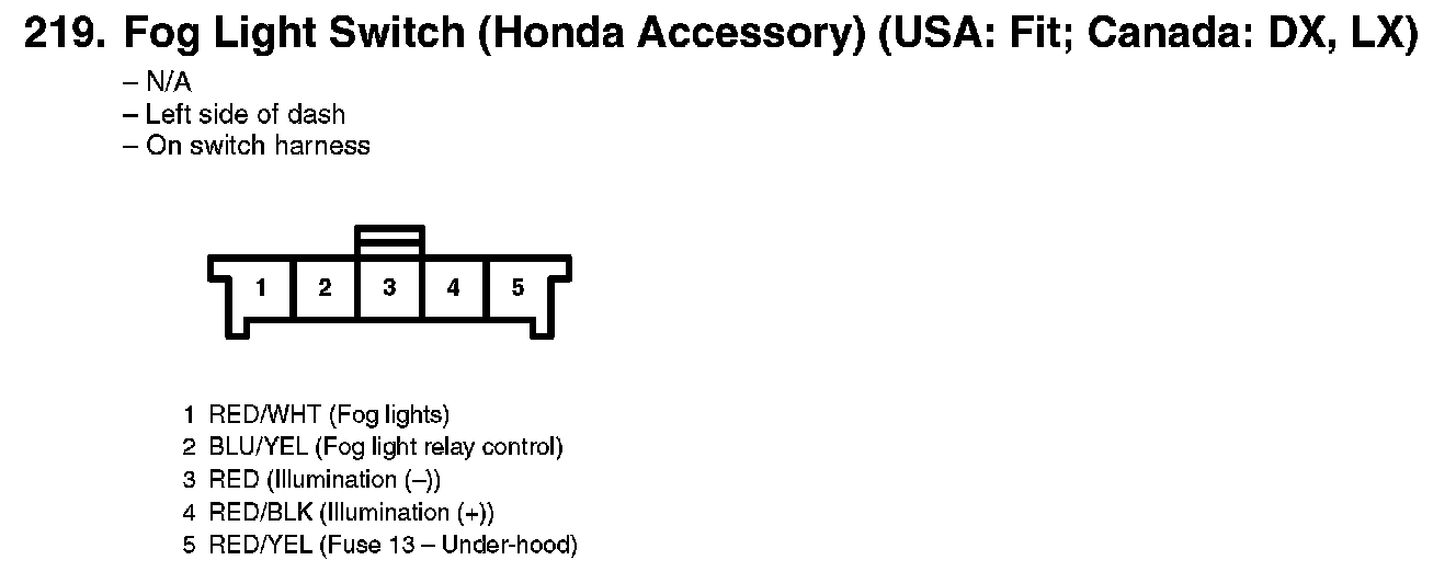 219. Fog Light Switch (Honda Accessory) (USA: Fit; Canada: DX, LX):