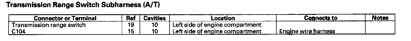 Transmission Range Switch Subharness (A/T):