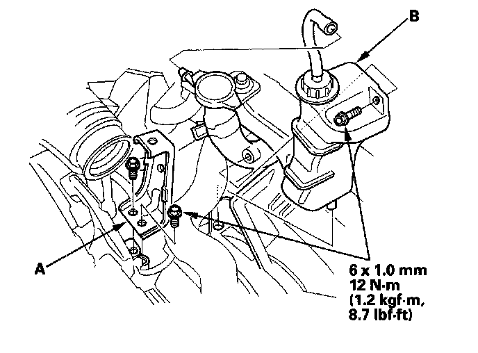 7. Remove the air cleaner housing bracket (A) and reserve tank (B).