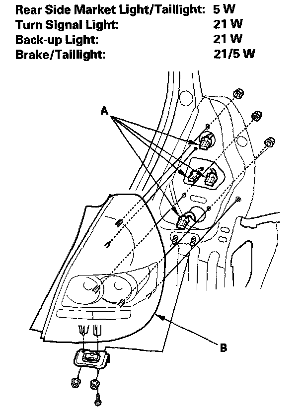 4. Remove the mounting nuts and the screw, then remove the taillight.