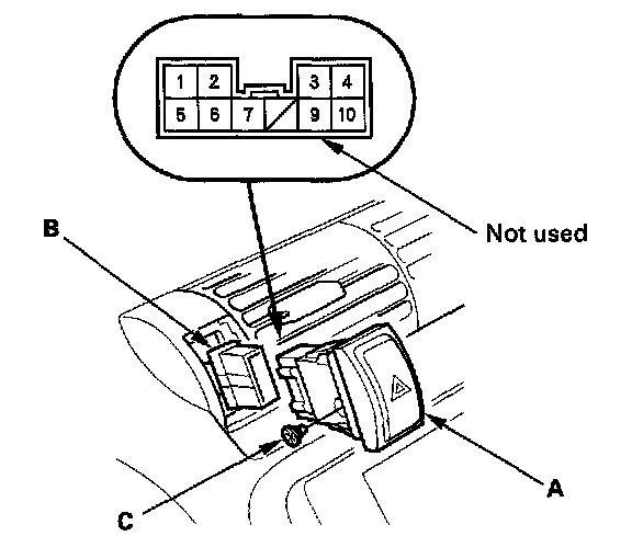 5. If the continuity is not as specified, replace the bulb (C) or the hazard warning switch.