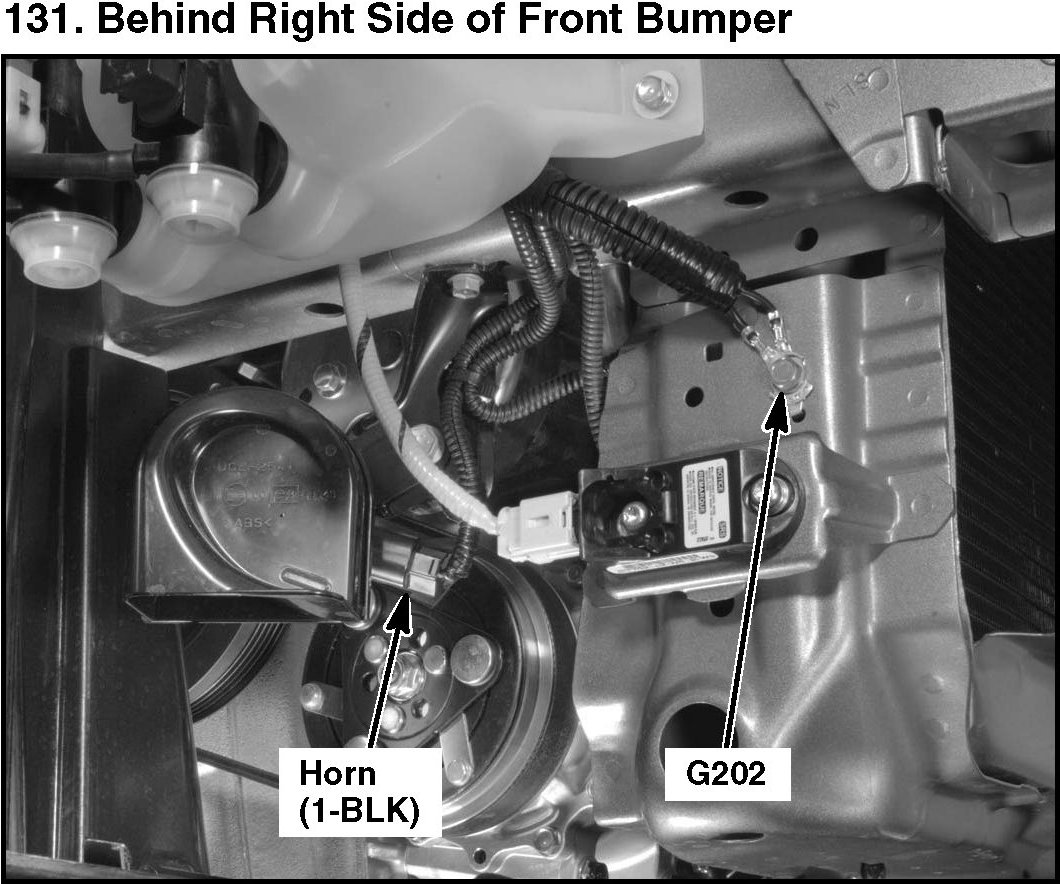 131. Behind Right Side Of Front Bumper: