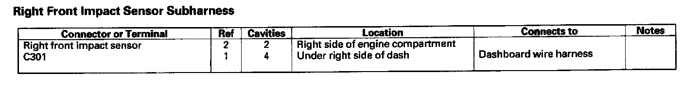 Right Front Impact Sensor Subharness: