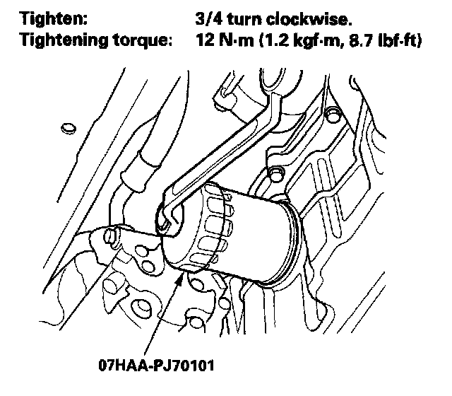 4. After the rubber seal seats, tighten the oil filter clockwise with the special tool.