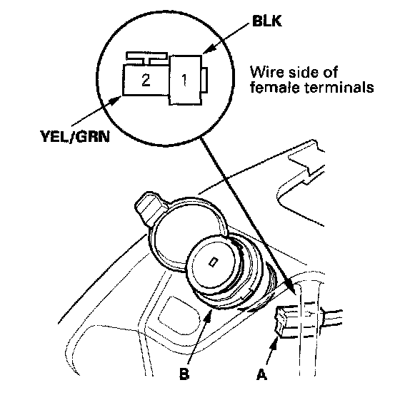 2. Disconnect the 2P connector (A) from the accessory power socket (B).