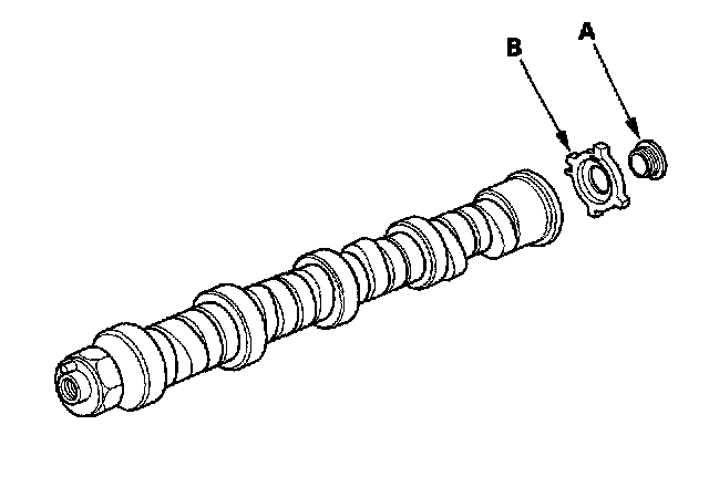 1. Install the CMP pulse plate (A) and CMP pulse plate mounting bolt (B) on both camshaft. Wipe them clean and lubricate the mounting bolt threads with new engine oil. Torque the bolt to 34 N.m (3.5 kgf.m, 25 lbf.ft).