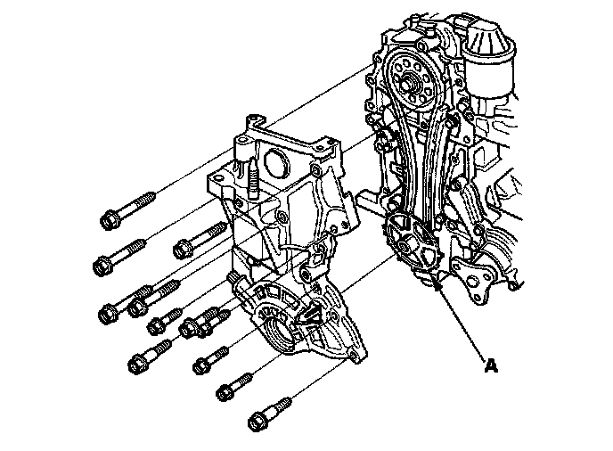 18. Remove all of the old liquid gasket from the chain case mating surfaces, bolt, and bolt holes.