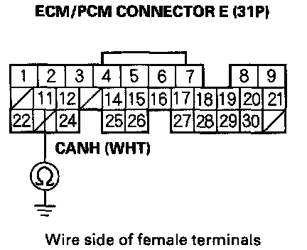 23. Check for continuity between ECM/PCM connector terminal E24 and body ground.