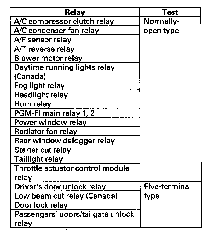 Power Relay TestUse this chart to identify the type of relay, then do the test listed for it.