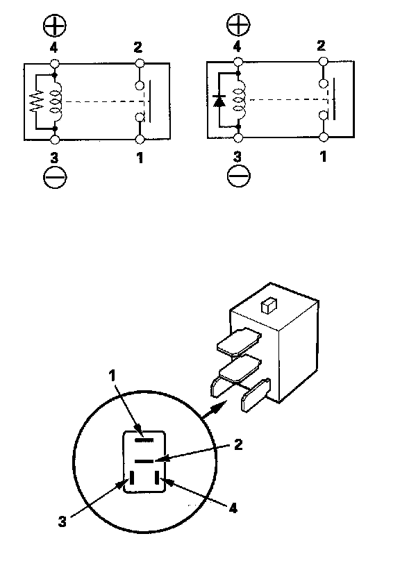 - There should be continuity between the No. 1 and No. 2 terminals when battery positive terminal is connected to the No. 4 terminal, and battery negative terminal is connected to the No. 3 terminal.
