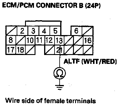 8. Check for continuity between body ground and ECM/PCM connector terminal B13.