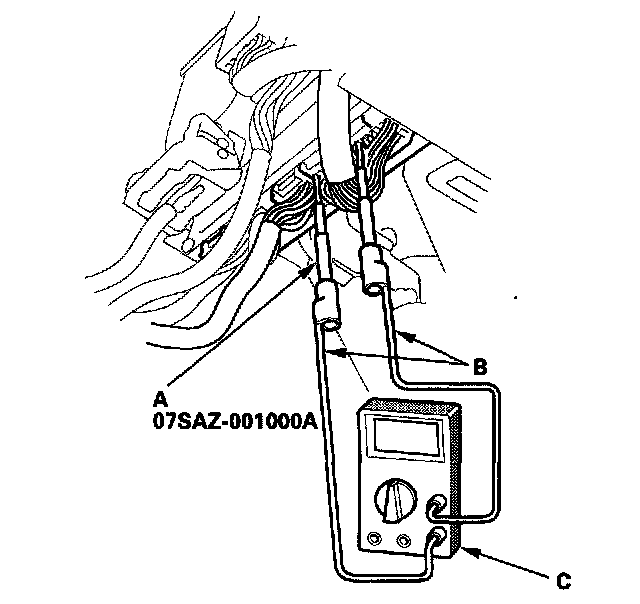 5. If you cannot get to the wire side of the connector or the wire side is sealed, disconnect the connector and use the tester probe to probe the connectors from the terminal side. Do not force the probe into the connector.