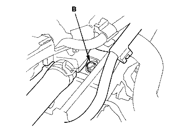 15. Measure the 1st clutch pressure at the 1st clutch pressure inspection port (B) while holding the engine speed at 2,000 rpm.