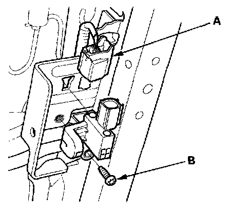1. Install the new driver's seat position sensor with a TORX bolt (A), then connect the seat position sensor harness 2P connector to the driver's seat position sensor (B).