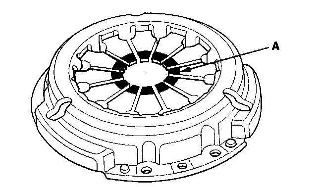 4. Inspect the fingers of the diaphragm spring (A) for wear at the release bearing contact area.