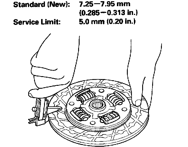 9. Measure the clutch disc thickness. If the thickness is less than the service limit, replace the clutch disc.