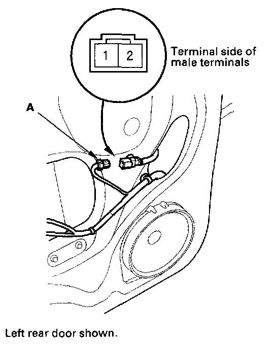 2. Disconnect the 2P connector (A) from the passenger's power window motor.