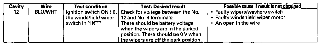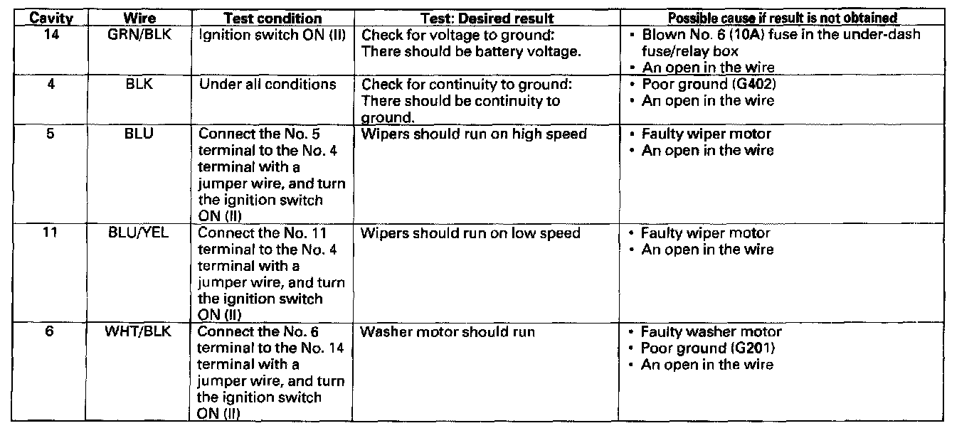 - If the input test prove OK, Go to wiper/washer switch test.