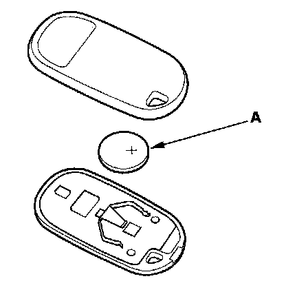 3. Replace the transmitter battery (A) with a new one, and try to lock and unlock the doors with the transmitter by pressing the lock or unlock button five or six times.