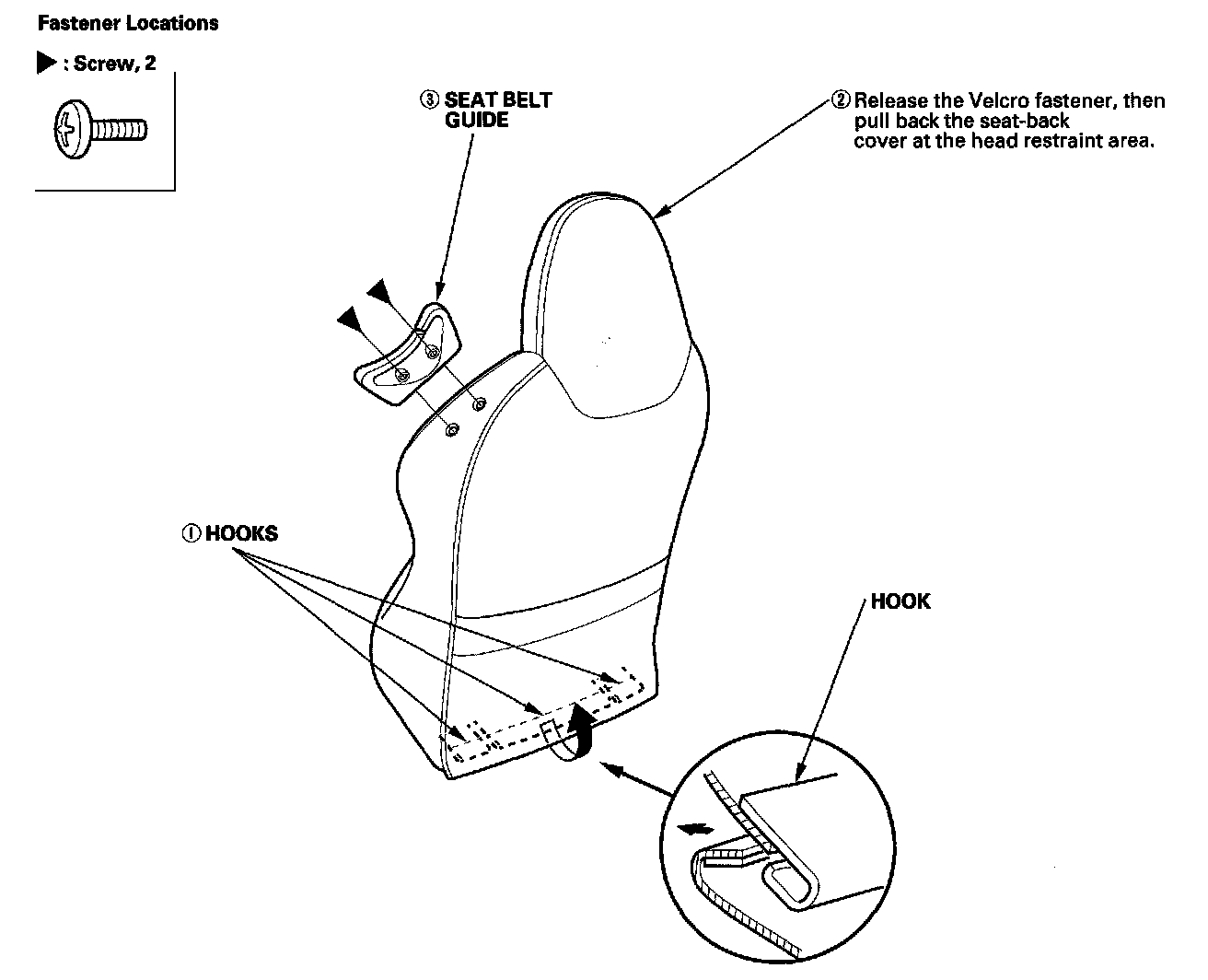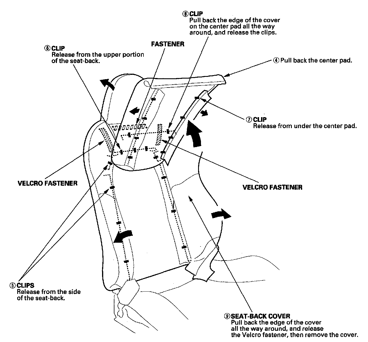 1. Remove the seat-back cover in numbered sequence.