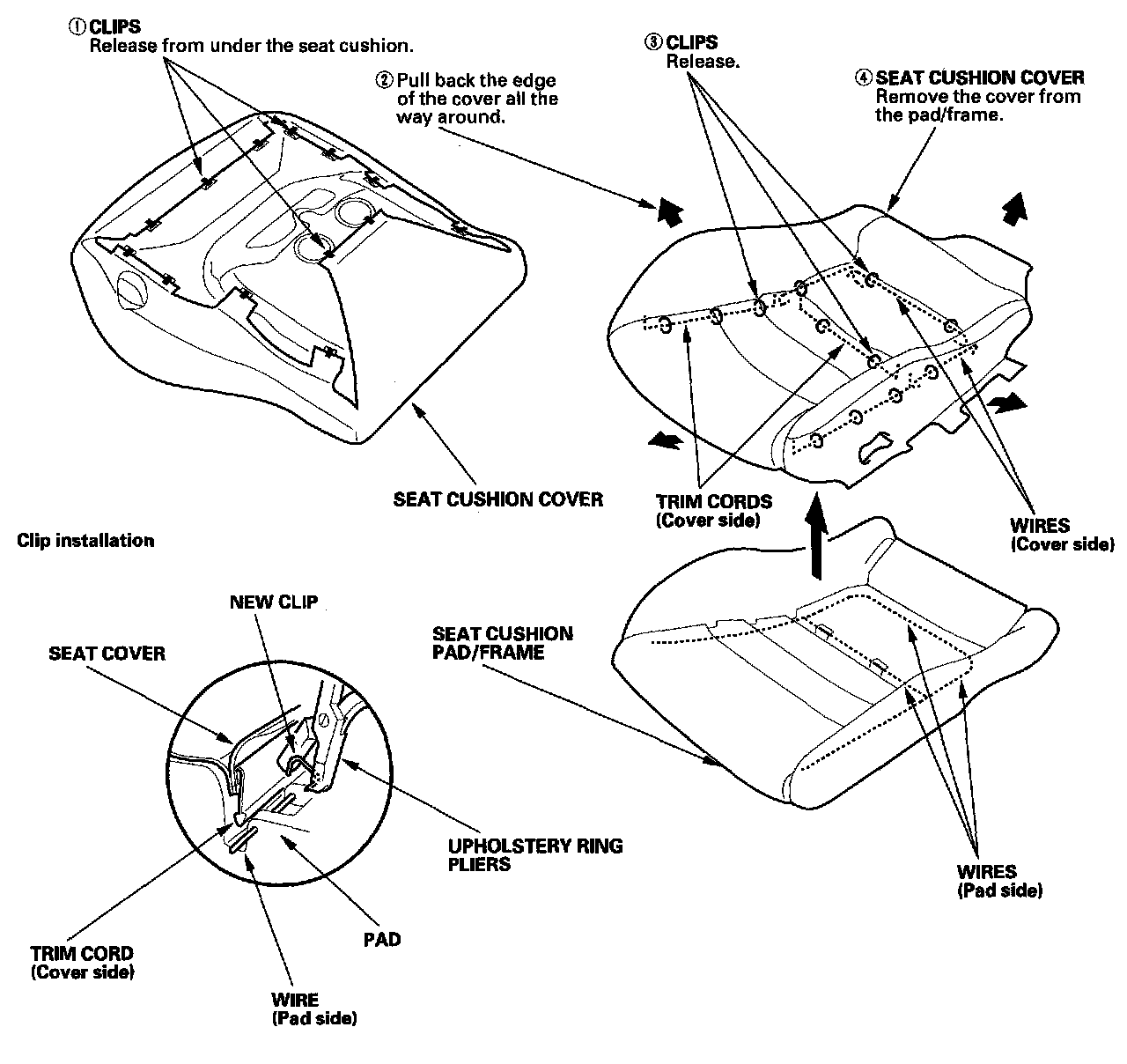 - Replace the released clips with new ones using commercially available upholstery pliers.