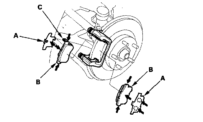 If you are reusing the brake pads, always reinstall the brake pads in their original positions to prevent a momentary loss of braking efficiency.