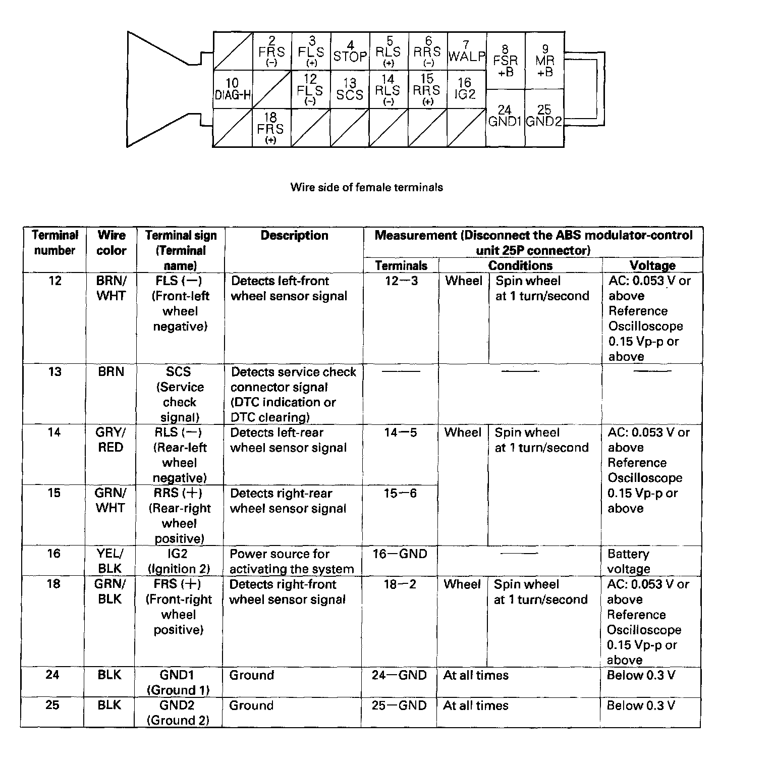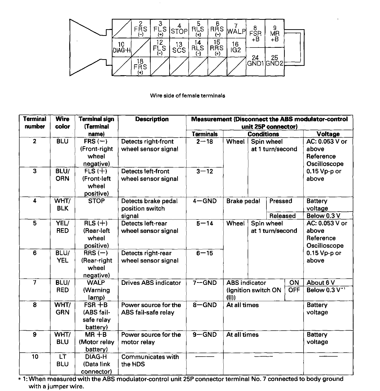 ABS Modulator-control Unit Inputs and Outputs for 25P Connector: