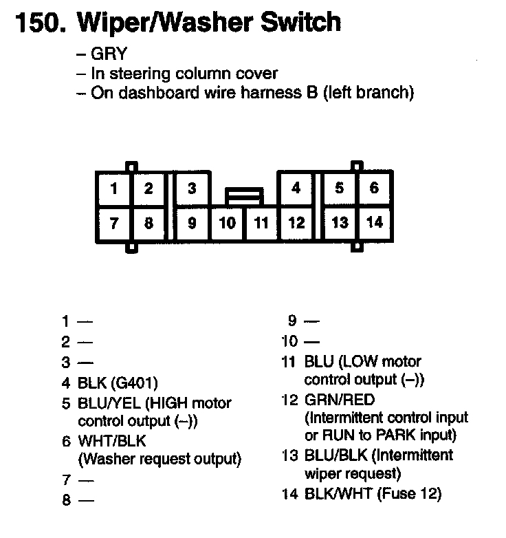 150. Wiper/Washer Switch: